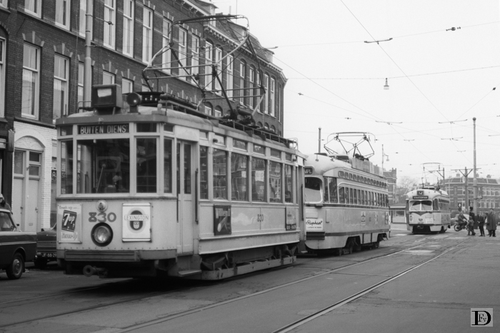 Defecte 1012 wordt door de 830 door de Van der Vennestraat naar de remise Frans Halsstraat gesleept.