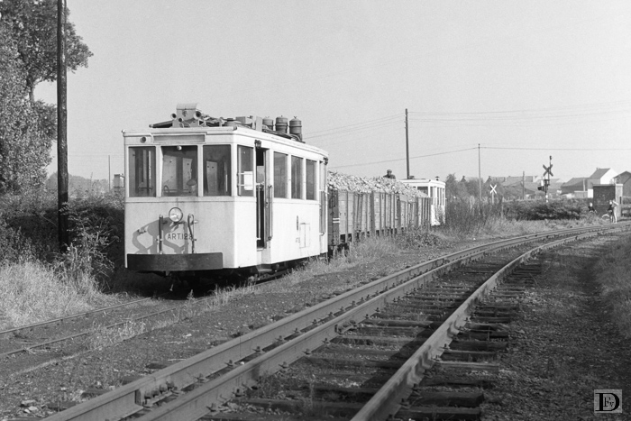 Bietentram op de lijn Halle-Booienhoven Tienen tussen de kruising met de spoorlijn Hasselt/Diest - Tienen en het overnamestation tussen NMVB en Raffinerie Tirlemontoise. Van rechts komt de driedelige spoorweg van deze Raffinaderij vanaf het fabrieksterrein. Tot genoemd overnamestation lopen beide lijnen enkele honderden meters parallel.