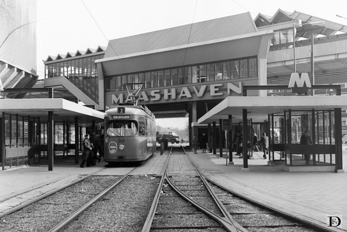 Brielselaan met overstapstation tram - metro Maashaven. Aan de tramhalte emr. 265 op lijn 2 richting Charlois.