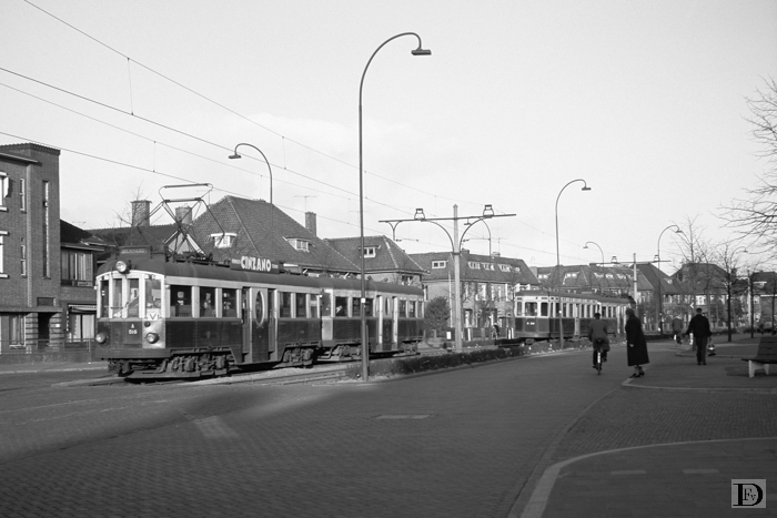 De Parkweg in Voorburg met kruisende trams van de lokaaldienst Voorburg viad. - Scheveningen.