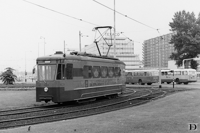 Ex HTM 205, in 1967 naar de RET, in juni 1969 in dienst. Achterste draaistel vervangen door nieuw exemplaar met zuiginrichting thyristorbesturing en de luchtreminstallatie van voormalig prototype rijtuig 100.