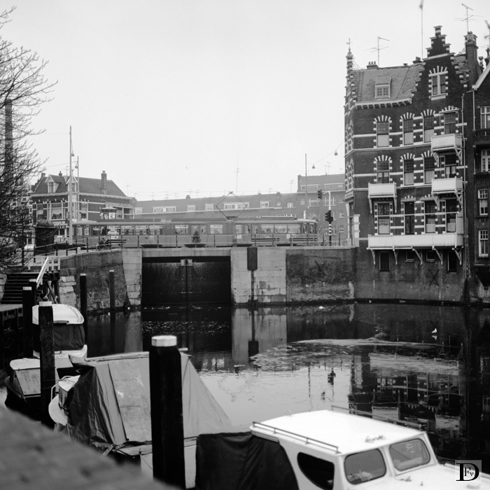 Aelbrechtskolk te Delfshaven met lijn 8 richting Lage Erfbrug en centrum.