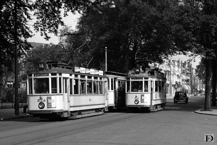 Naar Scheveningen: Emr. 84, die van de werkplaats kwam, maakte een ritje naar Scheveningen als lijn 14; op Scheveningen kreeg hij direct een aanhangrijtuig.